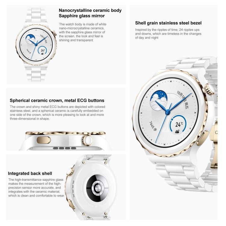 Huawei Watch GT 3 Pro Ceramics Smart Watch 43mm Genuine Leather Wristband